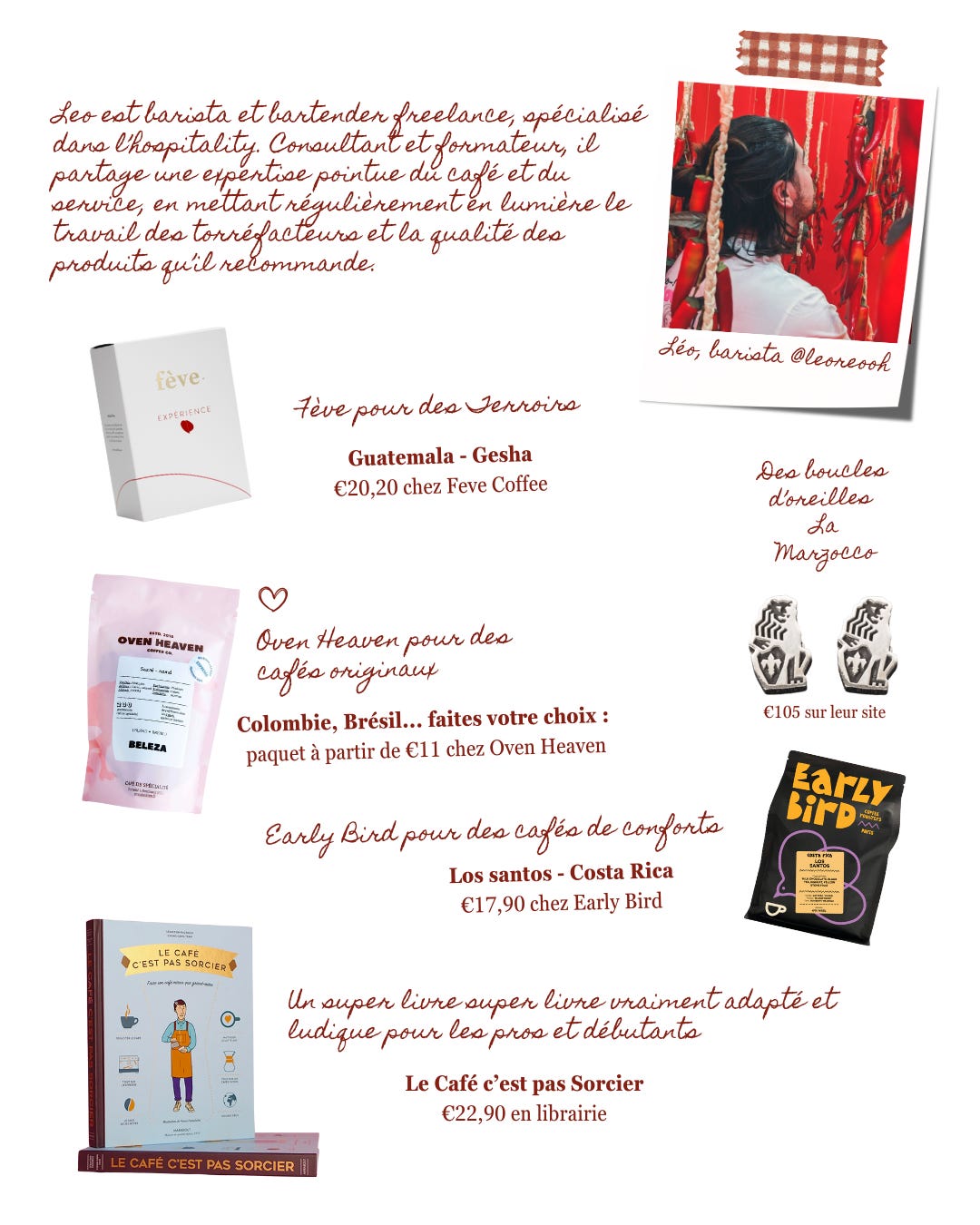Café Fève - Café Oven Heaven - Café Early Bird - Livre Café c’est pas sorcier - boucles d’oreilles La Marzocco